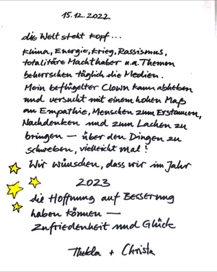 "Ausgelöst durch die Corona-Pandemie, den damit verbundenen Ängsten, Unsicherheiten und dem Leid, waren viele Menschen in den letzten beiden Jahren sowohl hier als auch weltweit von tiefgreifendem Wandel betroffen. Seit einigen Monaten kommen noch die Geschehnisse in der Ukraine dazu, die beunruhigen und auch bei uns die Angst vor Krieg und Not schüren.