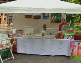 Es werden kleinformatige Kunstgegenstände angeboten, das heißt: Malerei, Skulpturen, Karten, Fotos und andere Kunstwerke. Die idyllische Atmosphäre inmitten des Waldes lädt außerdem zum Verweilen ein.